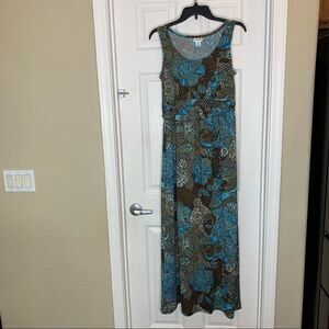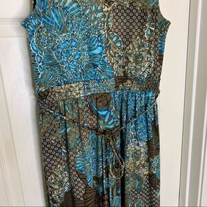 Size M Maxi dress Turquoise and olive colors Length 55.5” Bust 18” flat