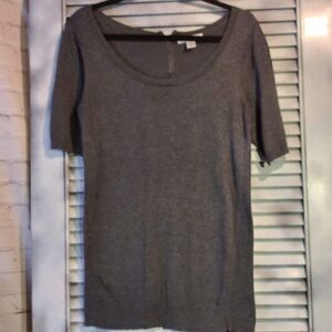 Classic short-sleeved sweater from Motherhood Maternity. Size medium. Side panels. Zipper back. 55% cotton, 38% rayon, 7% nylon. Machine washable. Made in China. Excellent condition. Nonsmoking home.