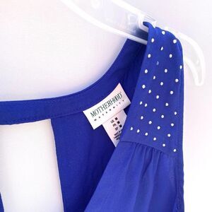 Motherhood maternity cobalt blue dressy tank top with studded shoulders.