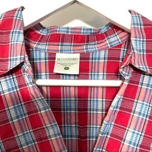 Motherhood maternity plaid 3/4 sleeve tie large