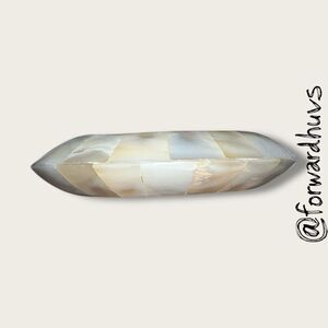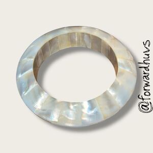 The mother of pearl exhibits delicate variations in tone and a soft, luminous quality that catches the light beautifully. While the bracelet is in excellent overall condition, there is a very small chip on the edge, which remains subtle and does not affect its structural integrity or visual appeal.