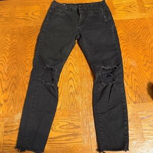 Mother's High Waisted Looker Ankle Cropped Fray Jeans in Black Sz 27