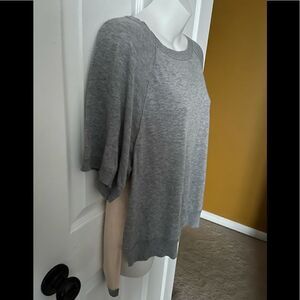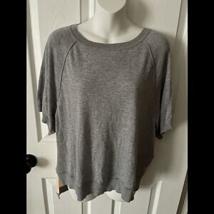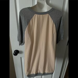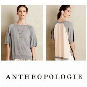 Moth by Anthropology hi-low hem crew neck. Heather gray soft Cotten knit front top. Float peach silk woven back . Size S. Over sized . Excellent like new condition from a smoke free/ pet friendly home .