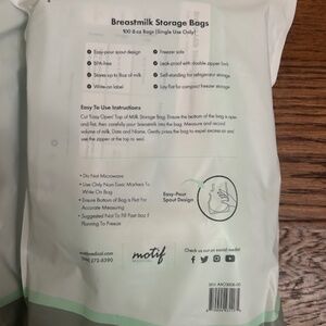 Motif Medical Breastmilk Storage bags, 8oz bags, 100 count, (x3) -New