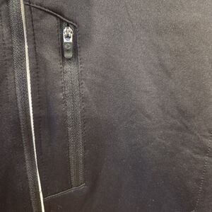 This is a new with tags Motion brand men's 1/4 zip pullover in "Black Onyx" (black). It is a size small and features a zippered front pocket. The fabric is a blend of 93% polyester and 7% spandex, and it is machine washable.