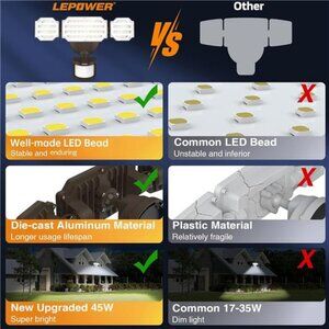 🧿5200 LM Brightness and Energy Saving: LEPOWER 48 W security lights motion outdoor are illuminated by LED beads, producing up to 5200 LM high brightness output, with a professionally designed reflective surface & filter lens, provide better illumination while saving over 85% electricity bills than 300 W traditional bulbs
