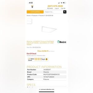 MaxLite 14100247 Fixture FLATMAx flat panel 2X2 EDGE LIT 30W 4000K(2 lights) brand new never put up have any questions feel free to ask. J3