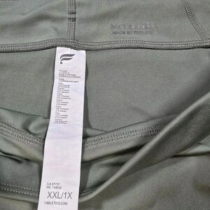 Elevate your activewear game with these Fabletics Motion365+ Contour High-Waisted Leggings in size XXL. The green and purple lace-up back adds a touch of style to these leggings, perfect for travel, casual wear, or your next workout session. The leggings feature an adjustable waist, compression, and pockets for added convenience.