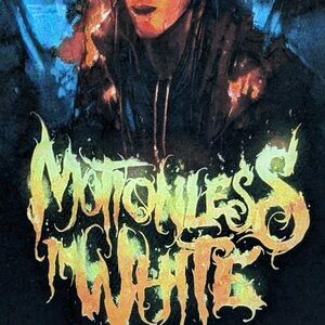 Motionless In White Group Girl's Large Boyfriend Fit Black T-Shirt Graphic Print