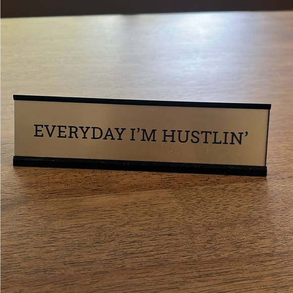 Motivational sign with 'Everyday I'm Hustlin'' text. Perfect for office, home, business, or bookshelf decor!