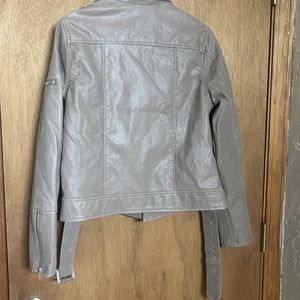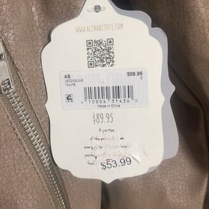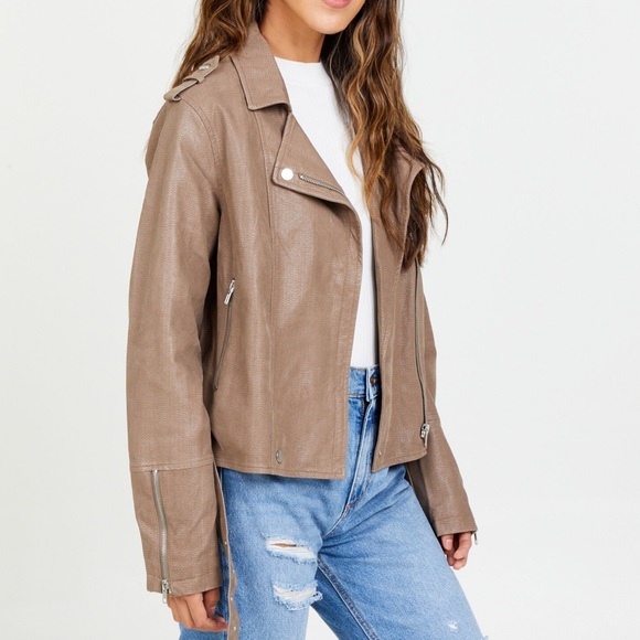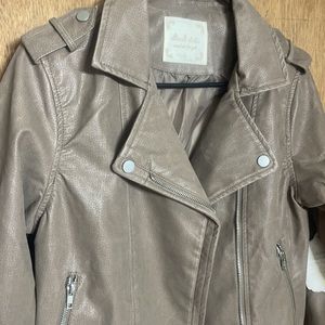 Super cute moto jacket. NWT. I would describe the color as a cool toned brown. Kind of a faux leather/suede look. Size small.
