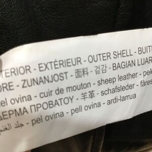 Beautiful black sheep leather moto jacket. Nice length on this one, super soft, sleeves are long 25” (from top shoulder seam to end of sleeve). Silver hardware, workable zippers on sleeves. Four functional pockets in front and one inside pocket. This is the perfect biker jacket. Missing snap on left side leaving small pin hole under left flap, see last two pictures, otherwise like new, no wear. Chest 40”, Length 26”.