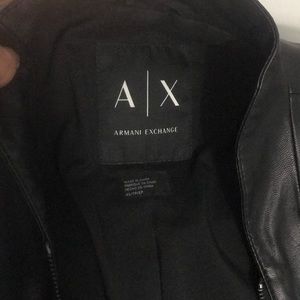 Black Moto jacket from A|X , side pockets and detail in the collar