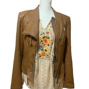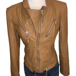 Moto jacket Blank NYC Soft Faux buttery Leather Carmel Color Women Size Small