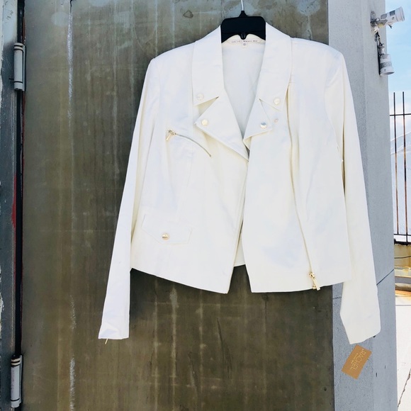 Cream cotton Moto jacket w/gold hardware