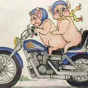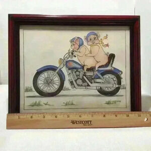 Two Hogs on Motorcycle Artwork signed by Nancy Hagy 1993