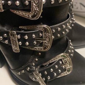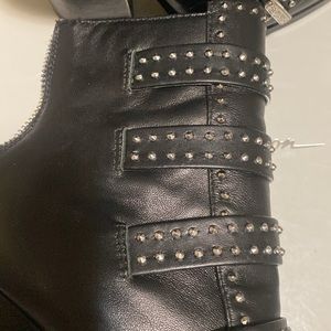 Black buckles studs/Spikes booties. Brand new comes to your ankle, zips in back, oval shape front , with a 2 inch thick heel. And comes with the original box.