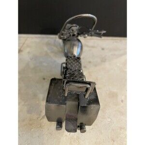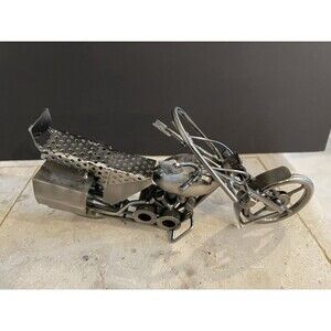 This is a unique collectible metal sculpture of a motorcycle using screws, bolts, nuts and wire