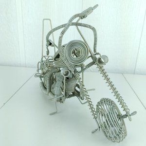 Motorcycle Chopper Wire Art Sculpture Handmade Heavy Metal 11" Long Biker Decor