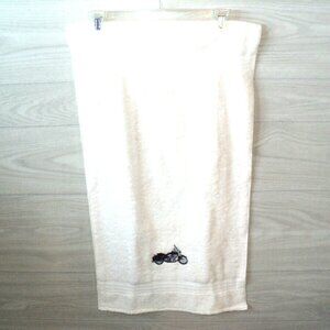 Motorcycle Embroidered Hand Towel White Luxury Wamsutta Vintage 30" x 16" NEW