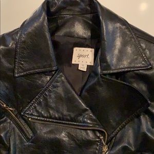 Vakko black motorcycle jacket. Zipper, belt, shoulder pads. Vintage early 90s. Good condition. Shipping or available for pick up in NYC or NJ.
