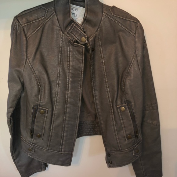 Great Condition! Beautiful gray, distressed leather jacket with buckle details throughout.