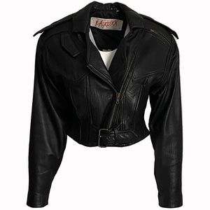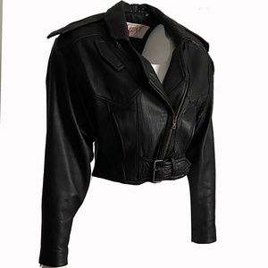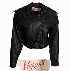 Motorcycle Jacket Black Leather with Zippers by LA ROXX Vintage Boutique Rare