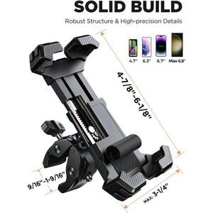 🧿STRONG HANDLEBAR CLAMP: The bike phone mount handlebar clamp is fully upgraded, making it sturdy, durable, and the bike cell phone holder handlebar is compatible with handlebar from 0.7” to 1.34”, you can use it on your ATV, scooter, stroller, peloton, etc.