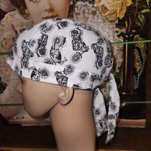 Motorcycle Print Cotton Scrub Head Wrap with Ties Unisex Scrub Cap Doo Rag