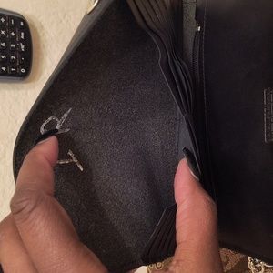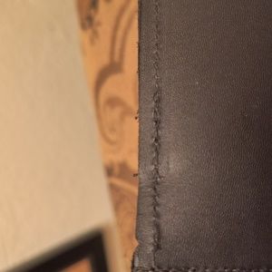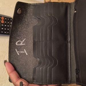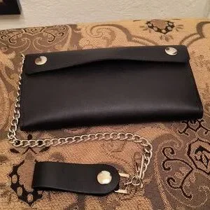 leather black wallet with attachable snaps to connect to your Gene hooks or wherever you may want to secure it too made in America genuine leather all the call outs are posted in the last photos