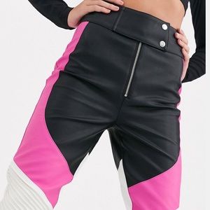 ASOS DESIGN biker motorcycle pink black and white pants 💗