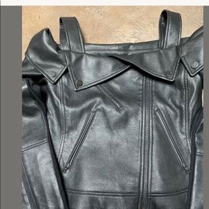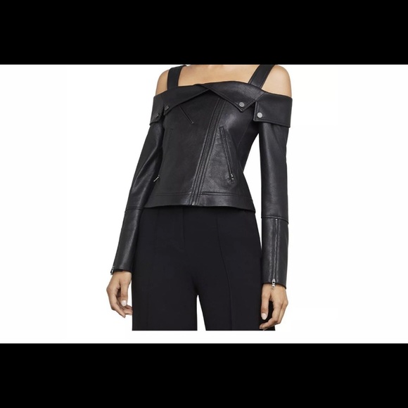 BCBG Maxazria-Clyde off the shoulder, faux napa leather Moto. NWOT