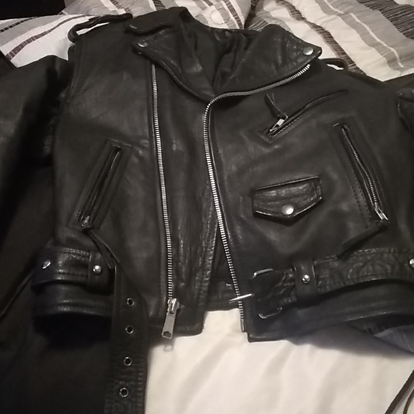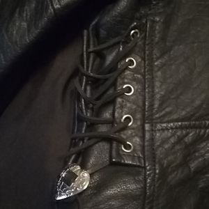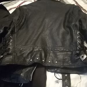 Heavy duty leather coat for a women very nice there no wear and tear in very good condition only worn once