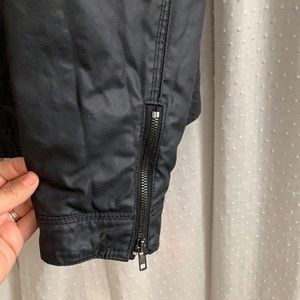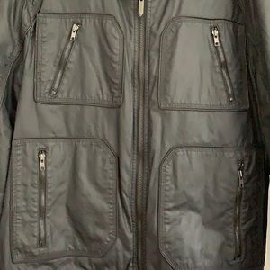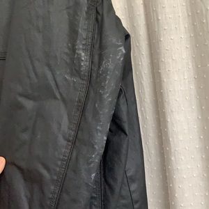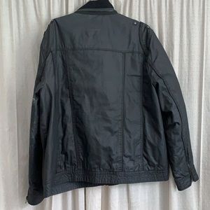 Coated black motorcycle jacket with zipper pockets. Quilted lining. Size XXL
