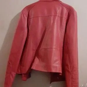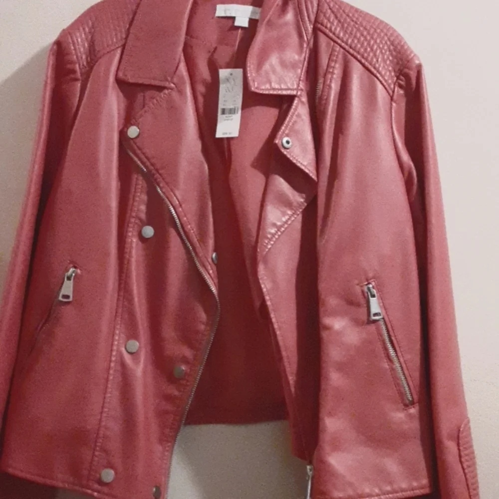 FAUX LEATHER LIPSTICK MAUVE PINK SNAP BUTTON UP AND ZIPPER, ZIP UP POCKETS, LINING, NEW
