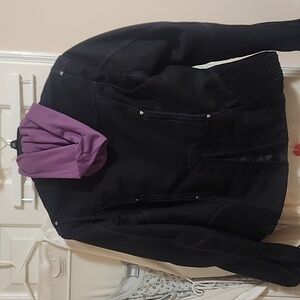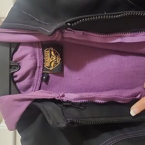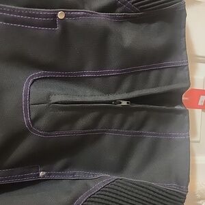 BRAND NEW WITH TAGS!!! Never worn! Women's size Large, absolutely beautiful 2-in-1 riding jacket. Black with purple chest design and purple stitching throughout. Inner purple hoodie attaches to outer jacket which blends 2 separate pieces into one super warm and protective piece of gear! The original full price on the tag was $139.95, I got it on sale for $99. It is WELL worth what I paid. In fact, it was an absolute steal, which is why I couldn't pass it up. I'm no longer with the guy with the bike, so I no longer need the biker jacket. Asking $75, but all reasonable offers will be considered. TIA!