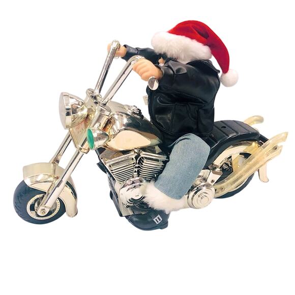 Motorcycle Santa Sings Dances in his seat Motorcyle Engine noise and Flashing Lights Requires Batteries