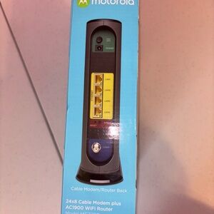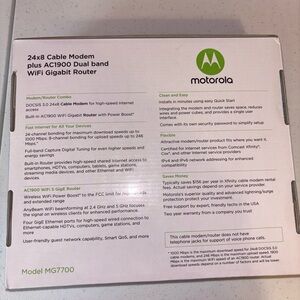 Experience seamless connectivity with the Motorola Black Modem-Router Combo, featuring an integrated cable modem and AC1900 WiFi router. This device supports high-speed internet, ensuring fast and reliable performance for all your networking needs. Compatible with major providers like xfinity, Cox, and Spectrum, it offers a versatile solution for your home network.