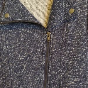 Blue moto-style cotton jacket, like new. Zipper detail on sleeves.