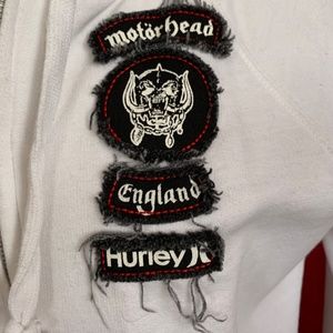 Unique hoodie . Super soft. Wore once, washed once. Front patches and back screen.