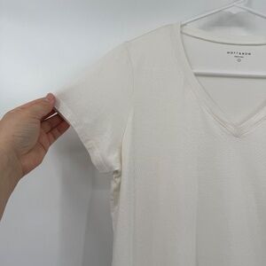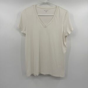 Style: Mott Bow Tee Women Large White V Neck Top Short Sleeve Minimalist Soft Knit