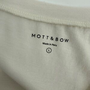 Mott Bow Tee Women Large White V Neck Top Short Sleeve Minimalist Soft Knit