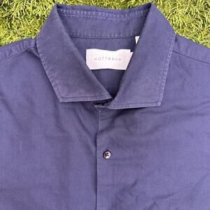 Mott & Bow Wythe Spread Collar Heavy Italian Denim Shirt Dark Wash Navy Blue XL