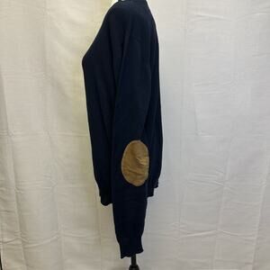 Mott & Grand XL Navy Sweater with Tan Elbow Patches | Men’s Knit Pullover