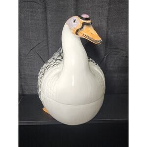 Vtg Italian Mottahedeh Design Duck Goose Tureen Covered Dish 14.5" Chinese style.