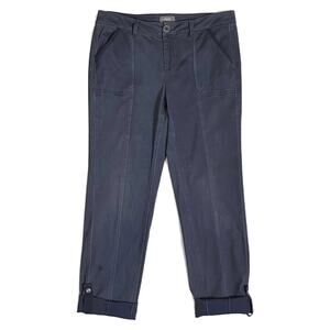 Motto Women's Utility Pants 10 Gray Blue Roll Cuff Soft Sateen Stretch Straight