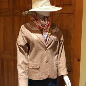 Awesome little coat with a fun pattern and cute stitching on the cuffs. 3 pockets on the front. Lined.