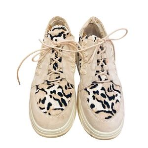 These stylish ankle boots by Mou feature a cream and grey neutral palette with a leopard print to make a pop! Designed for comfort and versatility as well as making a stamens. The soft upper material provides a luxurious feel, while the unique design adds a modern touch to any outfit. Fits true to size. Note leopard print is leather, hair on hide. call outs include light wear that you see in pics and a small stain near the laces on the left, also light discoloration under the laces and tongue of shoes. Pls reach out if you have any questions. Reasonable offers welcomed.