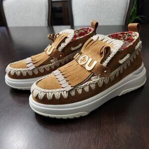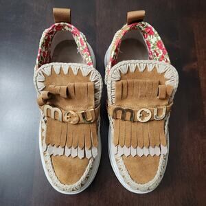 Mou Fringe Bootie in great pre-loved condition! Suede leatheruppers with fringe detail and gold logo. Size EU 38