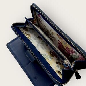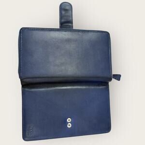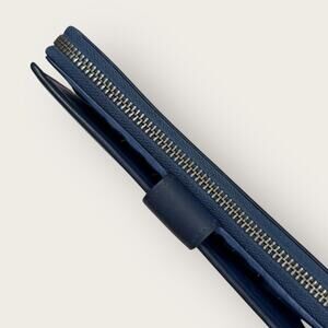 Mou Meraki RFID Leather Bifold Zippered Wallet Passport Creditcards Navy 8"X4.5"